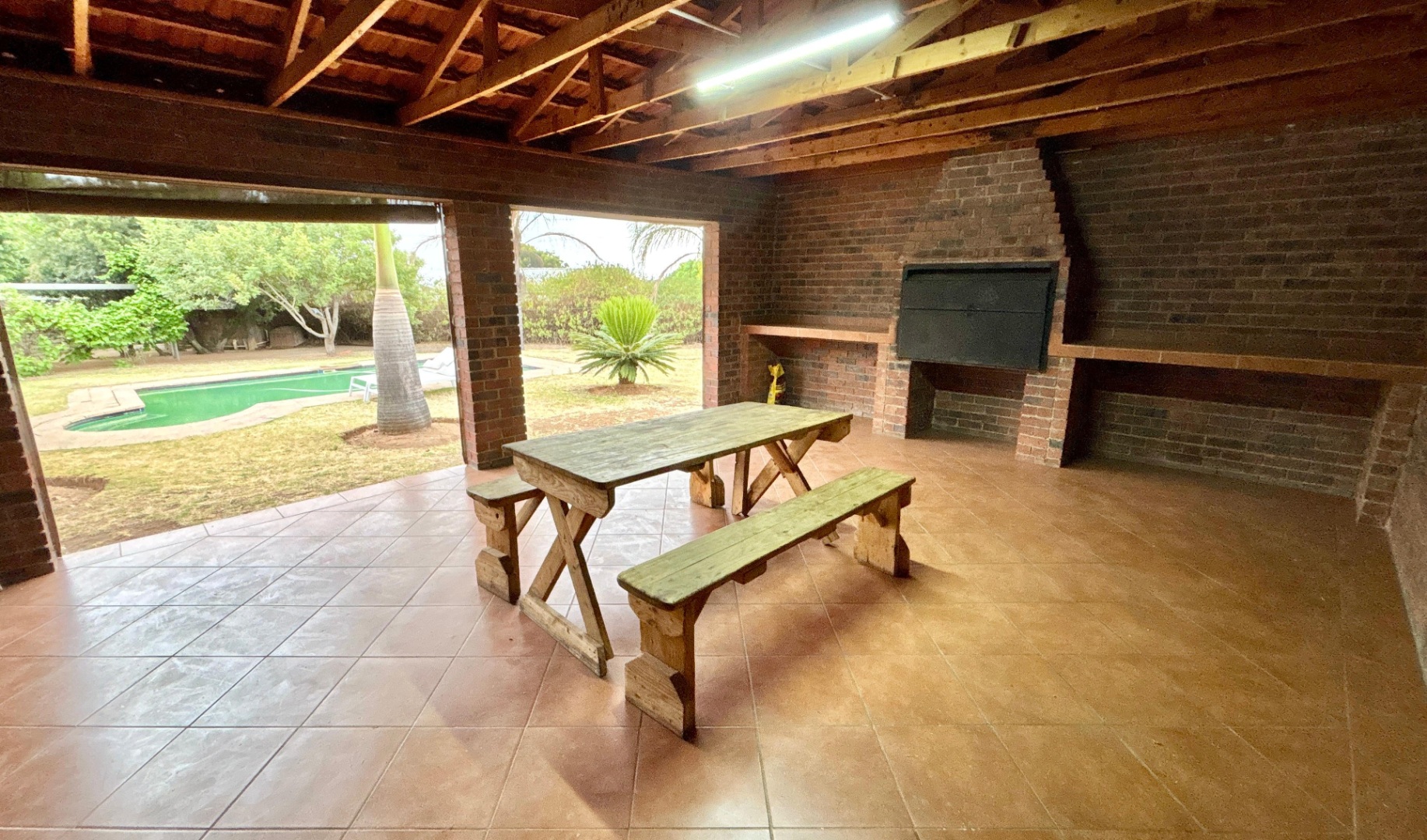 Outdoor living is facilitated by the established garden and the paved courtyard, ideal for entertaining or quiet enjoyment. Security is a prominent feature, with visible burglar bars, security gates, and an access gate ensuring peace of mind. Furthermore, the property is pet-friendly and includes a built-in braai, perfect for outdoor culinary pursuits. The Reeds offers a tranquil suburban lifestyle with convenient access to local amenities and major routes.
