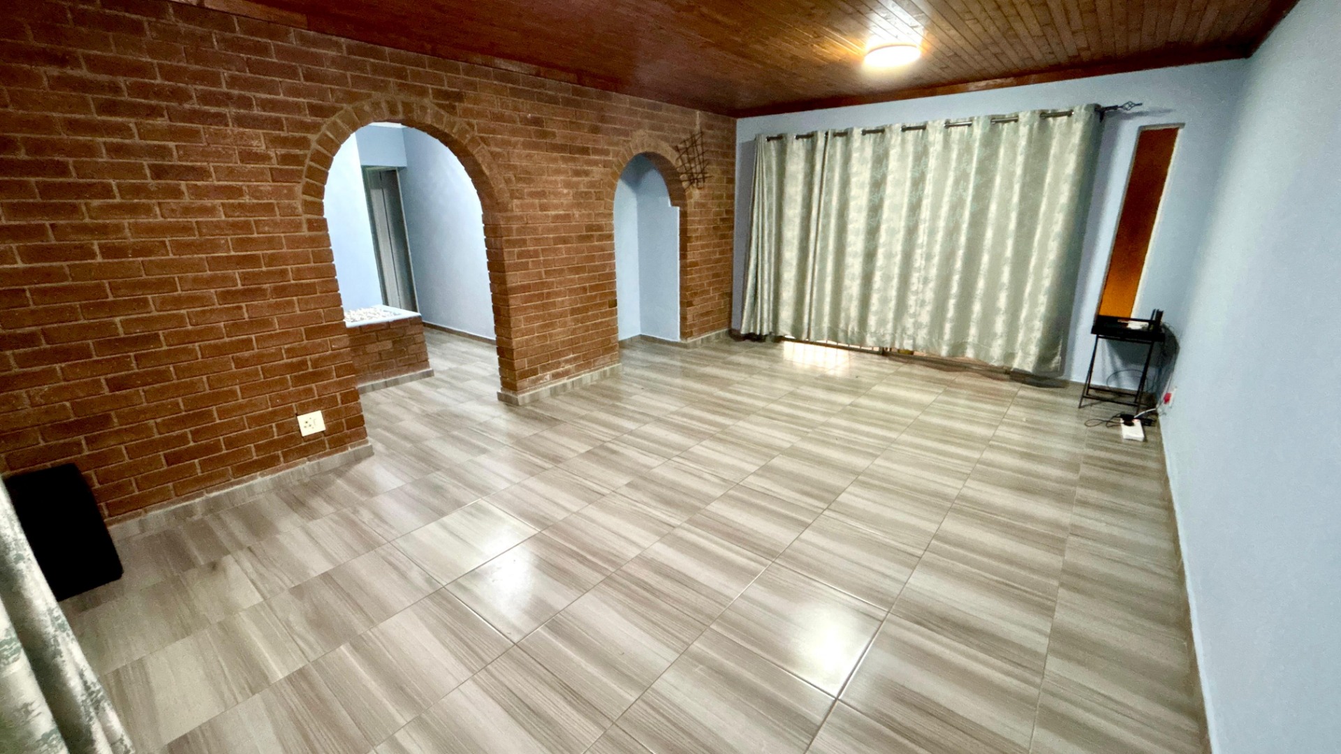 Upon entry, the interior reveals a thoughtfully designed layout spanning 276 square metres. The living spaces are characterised by unique architectural elements, including warm wood-paneled ceilings, exposed brick archways, and contemporary light blue walls, all set against modern tiled flooring. A dedicated lounge provides a comfortable area for relaxation, while a separate study offers an ideal space for remote work or quiet contemplation.