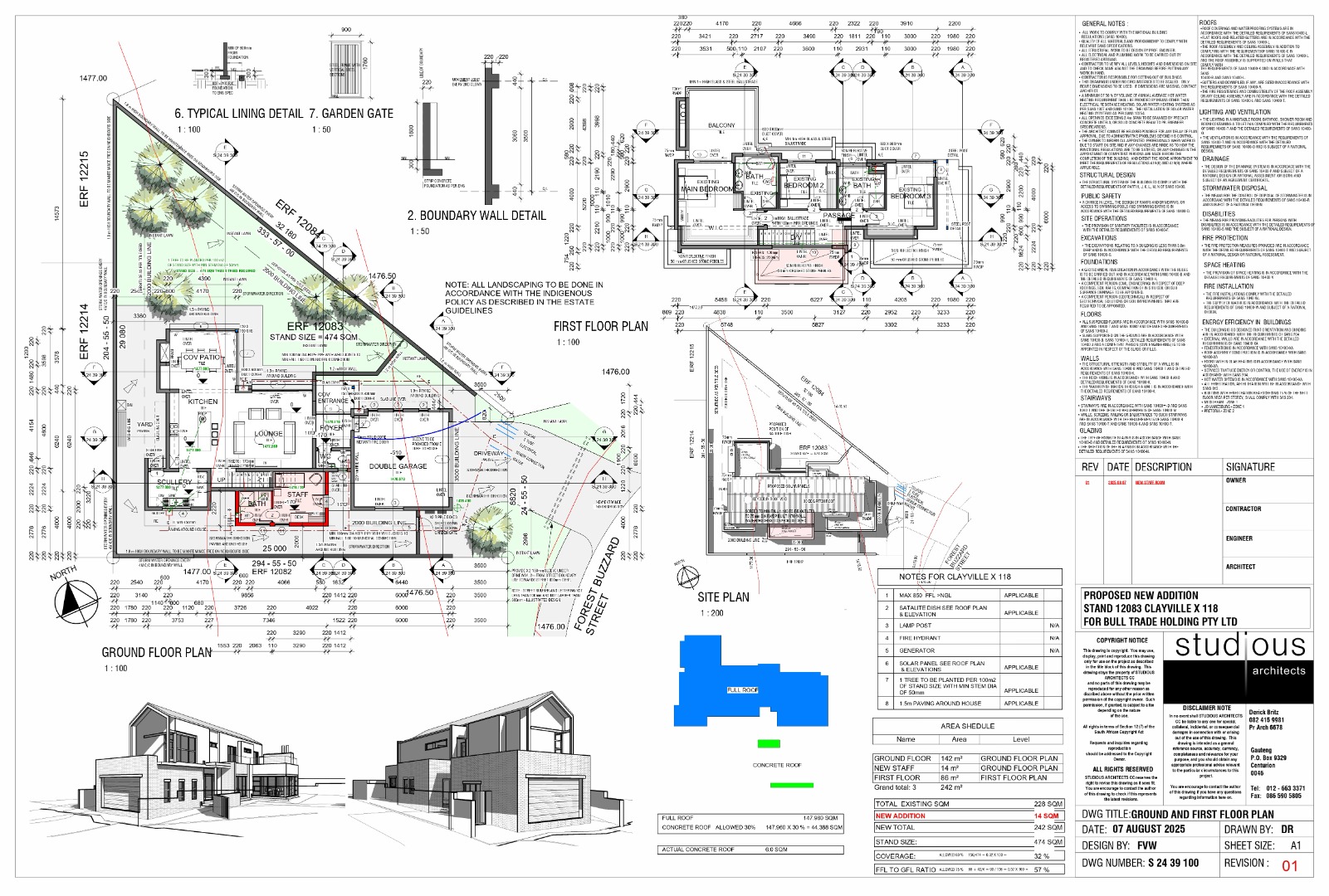 The interior layout features three well-appointed bedrooms and two full bathrooms, including a private en-suite for the main bedroom. The living spaces comprise a dedicated lounge and dining room, providing ample areas for relaxation and entertaining. A modern kitchen serves as the heart of the home, designed to cater to contemporary culinary needs. The property also includes practical amenities such as staff quarters with a staff bathroom enhancing it's appeal.