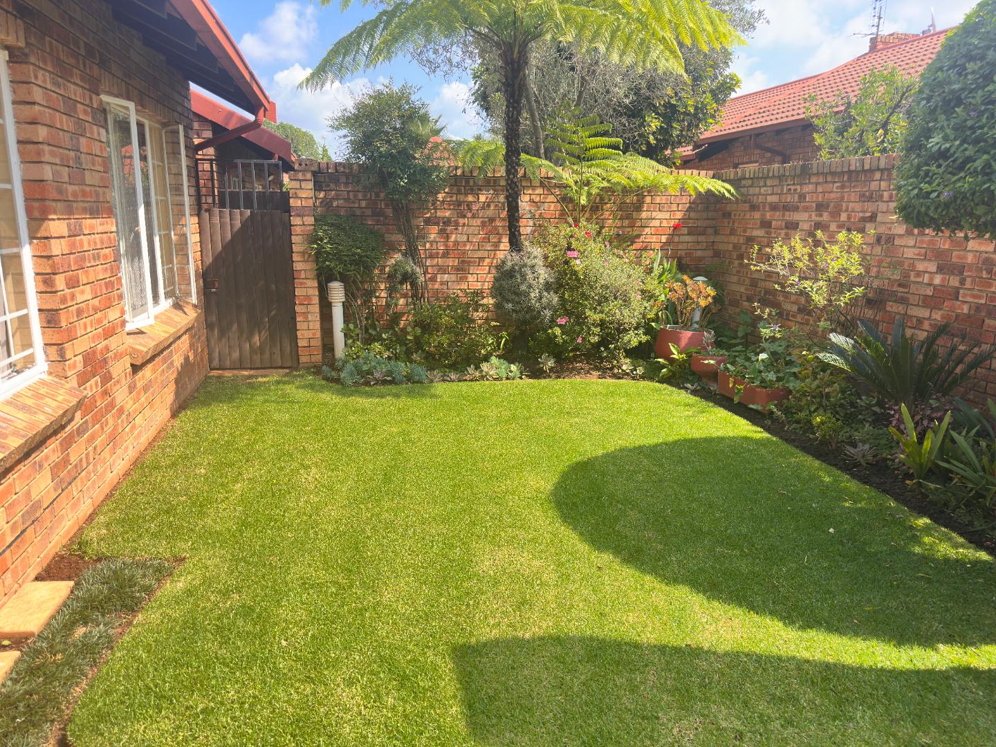 the enclosed garden with build in braai.