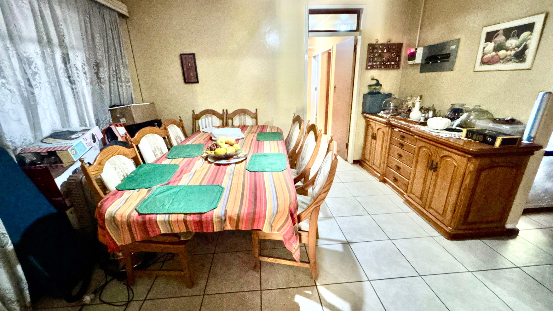 Carports on both sides of the house provide secure parking with safety gates, offering ample space for multiple vehicles, a caravan, or a trailer. The backyard includes a lapa and built-in braai, ideal for entertaining family and friends.