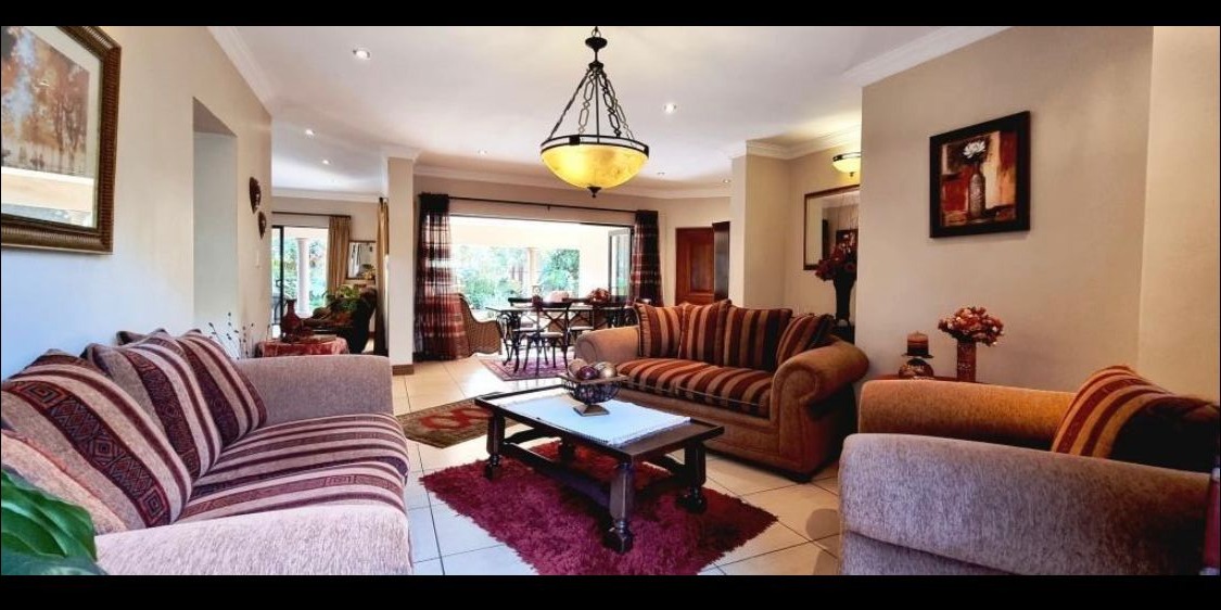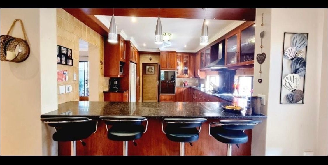 Situated on an 834 sqm erf with a floor size of 438 sqm, this property provides ample space for comfortable living. The secure golf estate environment offers peace of mind and a desirable lifestyle, complemented by a well-appointed kitchen and two garages, catering to all your family's needs.