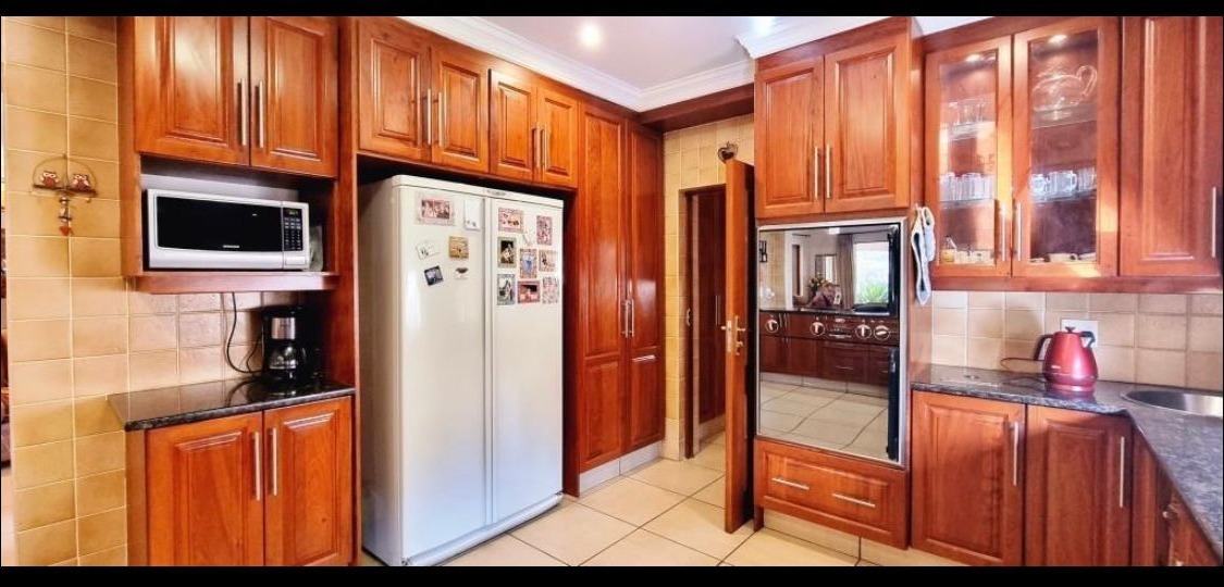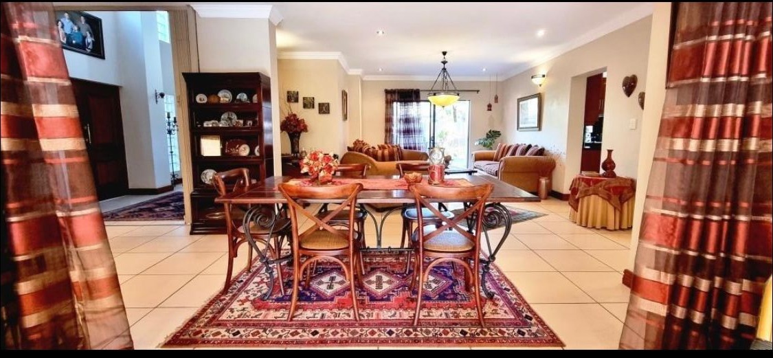 Situated on an 834 sqm erf with a floor size of 438 sqm, this property provides ample space for comfortable living. The secure golf estate environment offers peace of mind and a desirable lifestyle, complemented by a well-appointed kitchen and two garages, catering to all your family's needs.