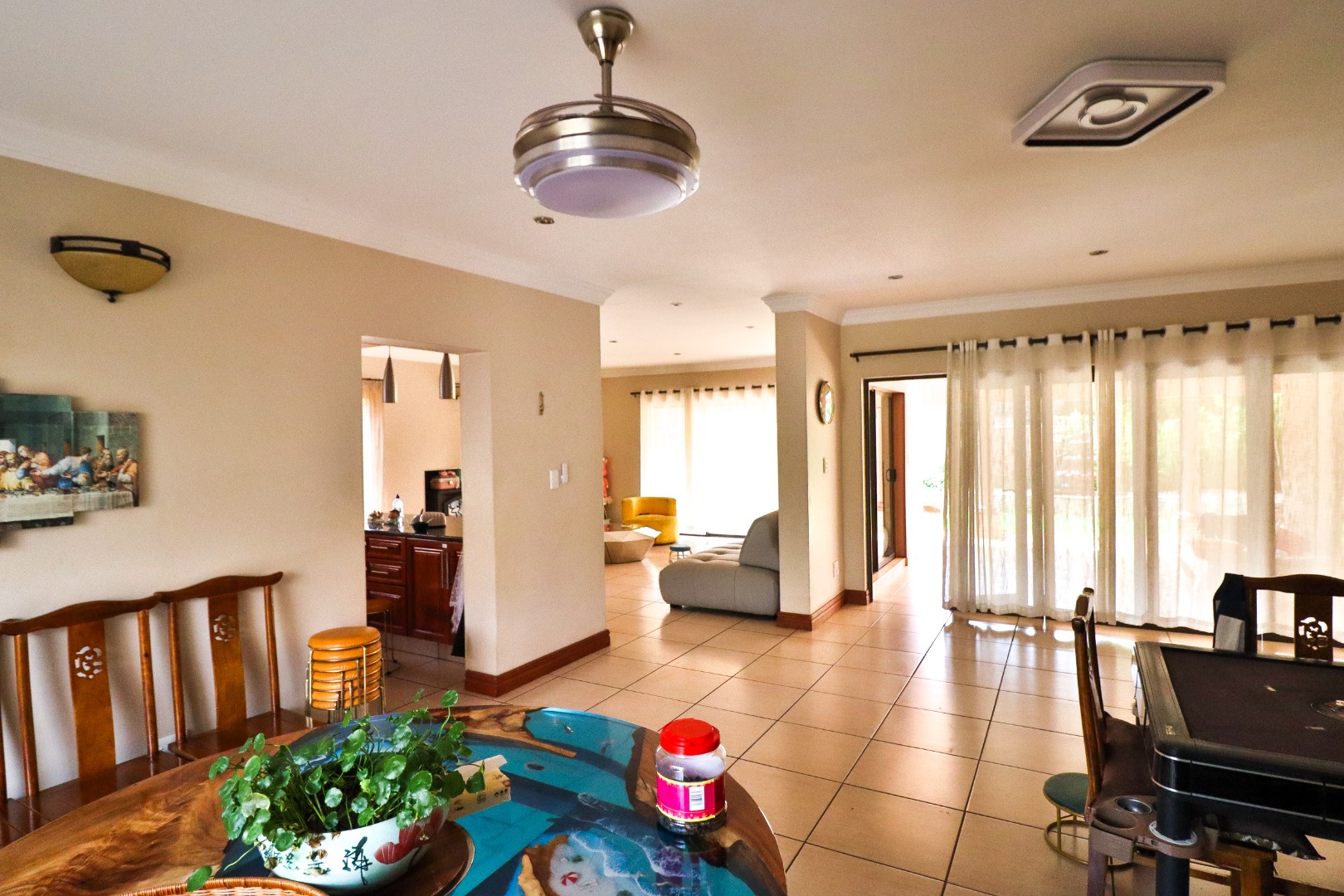 Situated on an 834 sqm erf with a floor size of 438 sqm, this property provides ample space for comfortable living. The secure golf estate environment offers peace of mind and a desirable lifestyle, complemented by a well-appointed kitchen and two garages, catering to all your family's needs.