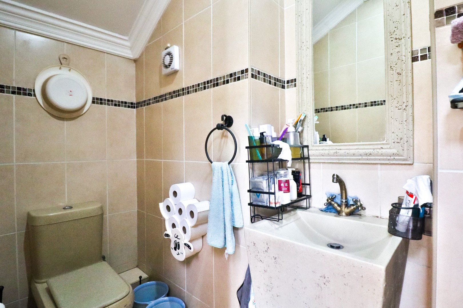 This home offers four comfortable bedrooms, each designed for relaxation. The rooms enjoys direct access to a private outdoor patio, bathing the space in natural light. The 3.5 bathrooms include a compact, tiled guest bathroom with a distinctive pedestal sink, ensuring convenience and style.