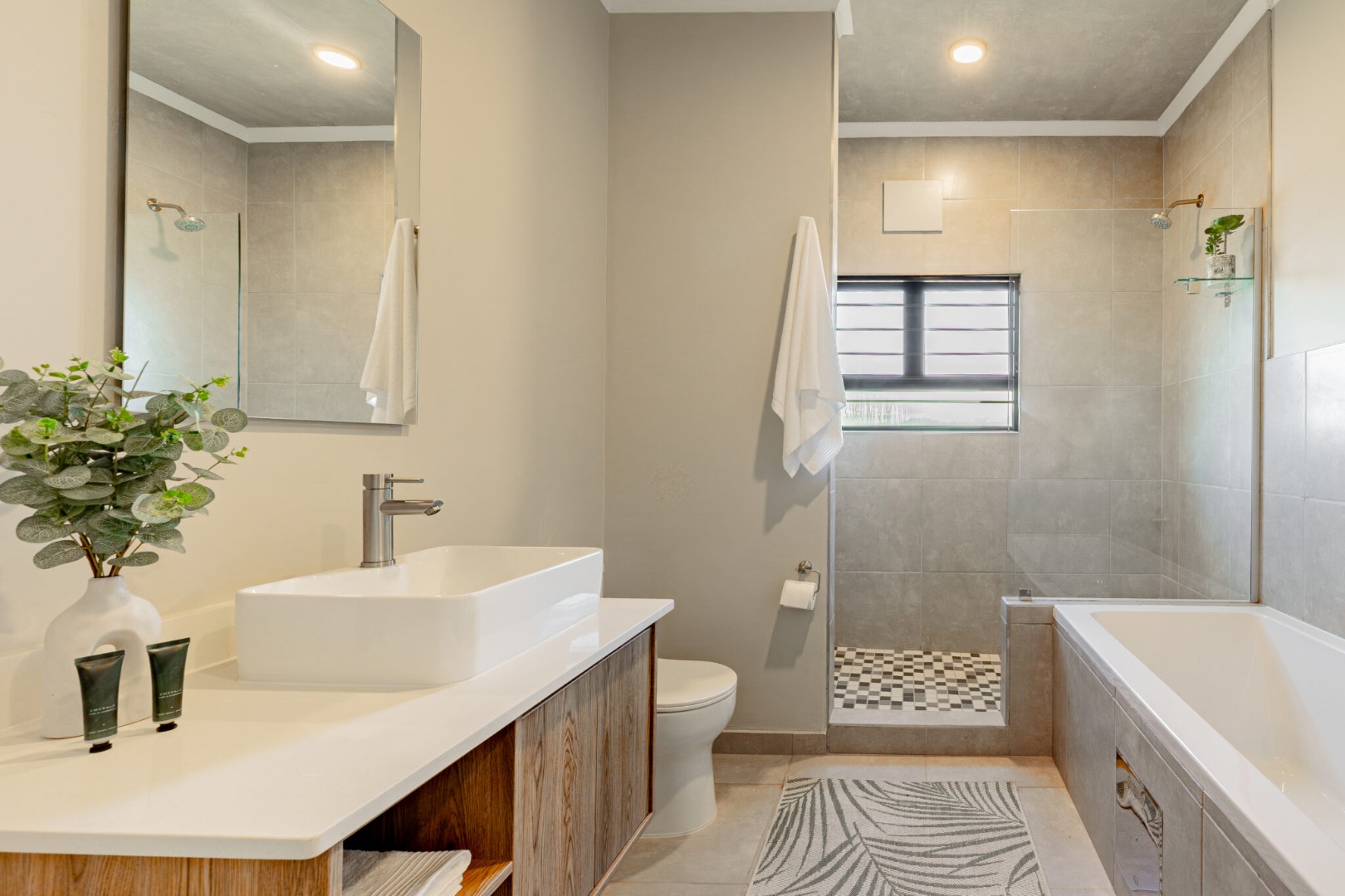 Two modern bathrooms — including a full bathroom and a